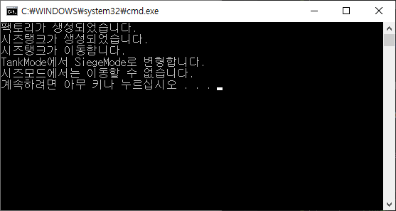 Console.WriteLine("시즈탱크가 생성되었습니다.");